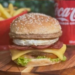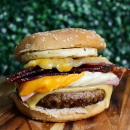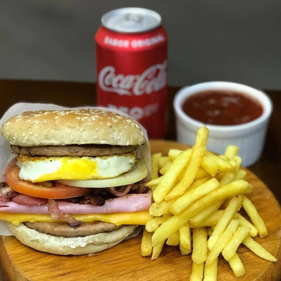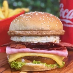 2 CARNES PICANHA 120GR + QUEIJO + PRESUNTO + OVO + BACON + CHEDDAR E CATUPIRY