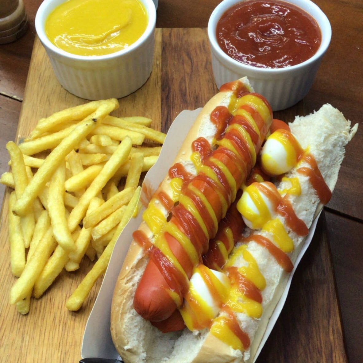 PÃO - 2 SALSICHAS - MOLHO - OVO DE CODORNA