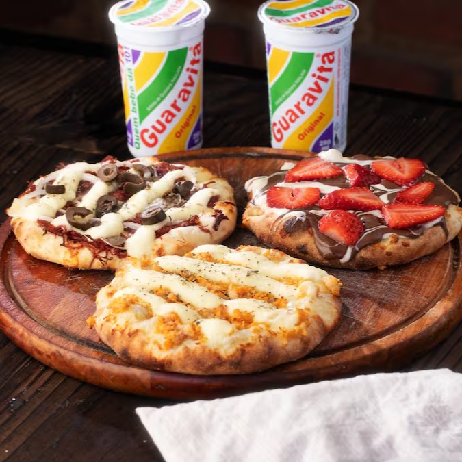 Uma explosão de sabores com nossas 03 Esfihas, recheada com ingredientes frescos e deliciosos. Desfrute da combinação perfeita entre a massa macia e crocante, coberta com um generoso recheio de sua escolha + 2 Guaravita Gratis.
