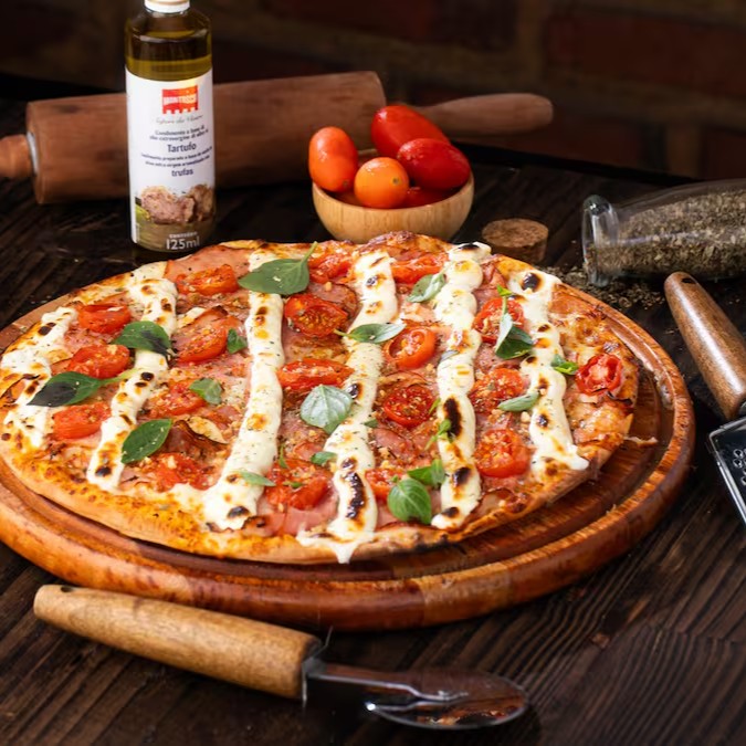 Aproveite a Delícia Dupla: uma irresistível Pizza Gigante de 30 cm com 2 sabores à sua escolha. Com massa fresquinha, ingredientes de qualidade e um tamanho generoso, essa pizza vai satisfazer todos os seus desejos gastronômicos. Experimente essa combinação perfeita de sabores e desfrute de momentos deliciosos com amigos e familiares. Peça agora e deixe sua noite ainda mais especial.