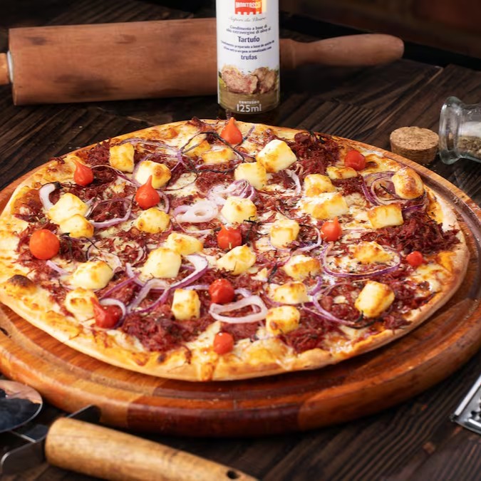Aproveite a Delícia Dupla: uma irresistível Pizza Gigante de 40cm com 2 sabores à sua escolha. Com massa fresquinha, ingredientes de qualidade e um tamanho generoso, essa pizza vai satisfazer todos os seus desejos gastronômicos. Experimente essa combinação perfeita de sabores e desfrute de momentos deliciosos com amigos e familiares. Peça agora e deixe sua noite ainda mais especial.