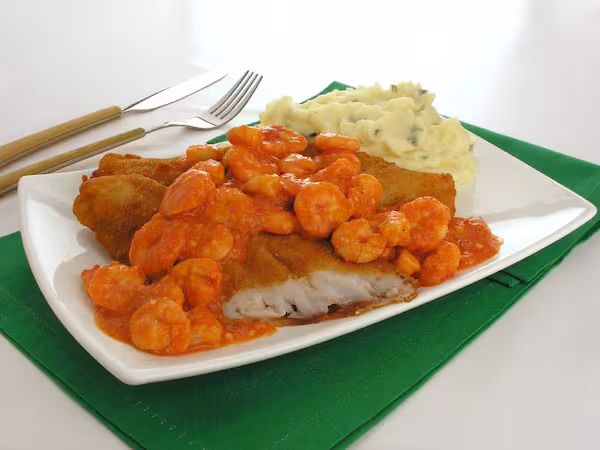 File De Peixe C Molho De Camarão ( Arroz, Feijao, Farofa E Fritas )