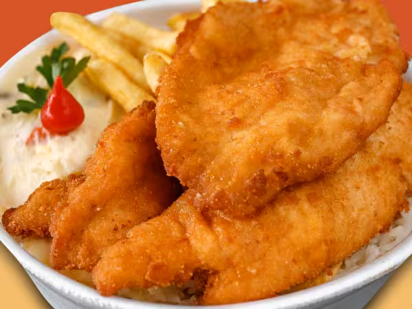 Filé De Peixe À Milanesa Com Arroz E Acompanhamento