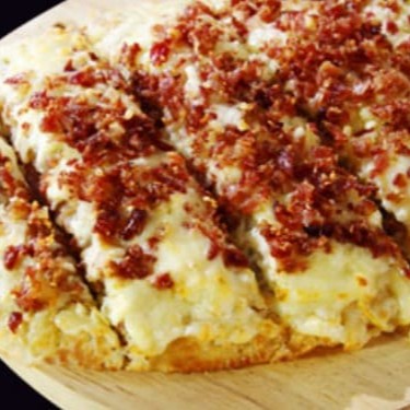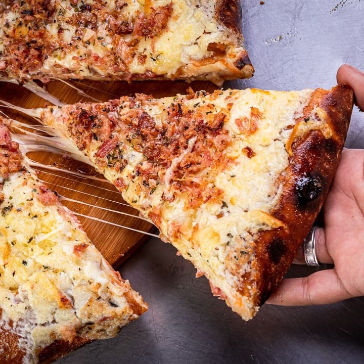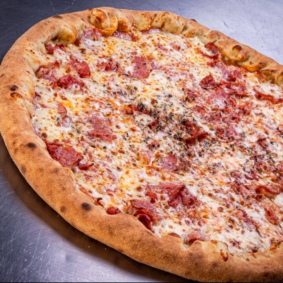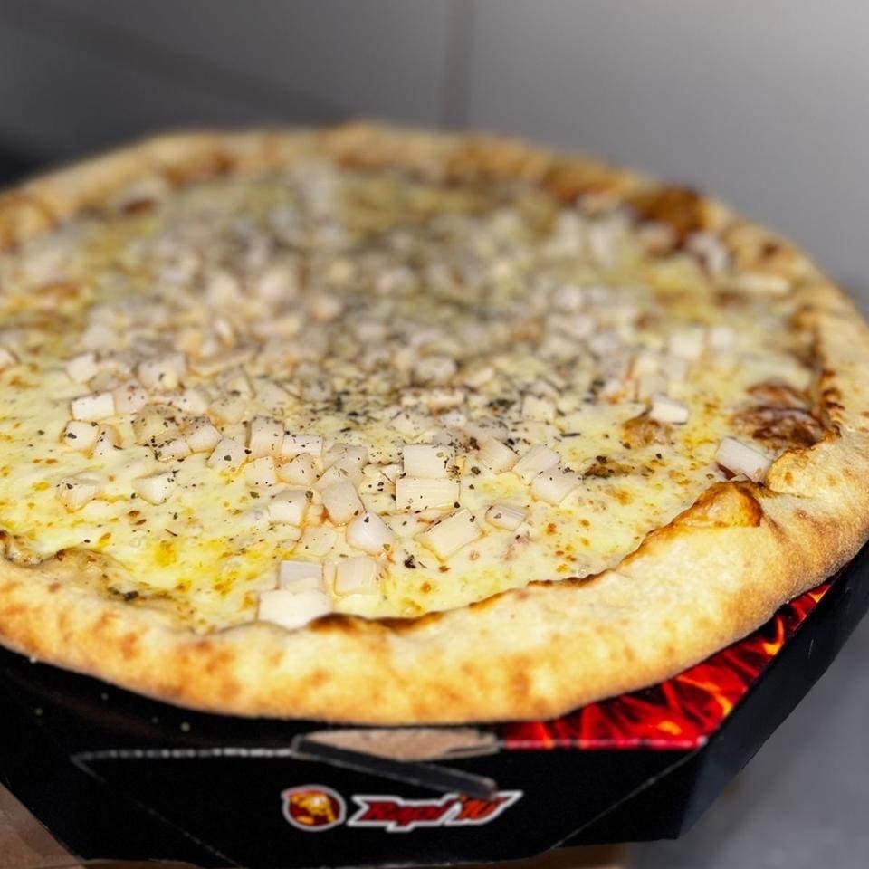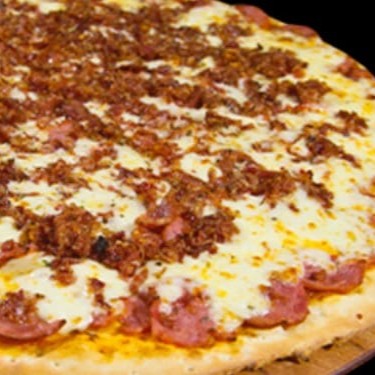 Nossa Pizza Carro Chefe, De Dois Andares, Dois Quilos De Recheio, 35 Cm E 8 Fatias. No Primeiro Andar É Molho, Mussarela, Requeijão E Frango: No Segundo Andar É Provolone, Parmesão, Bacon E Molho Especial, Sem Contar Com A Borda Que Vem Recheadíssima Com Cheddar, Requeijão E Mussarela. Com aproximadamente 2kg de recheio!