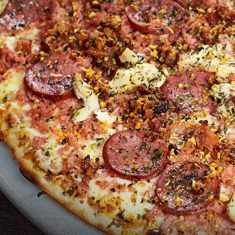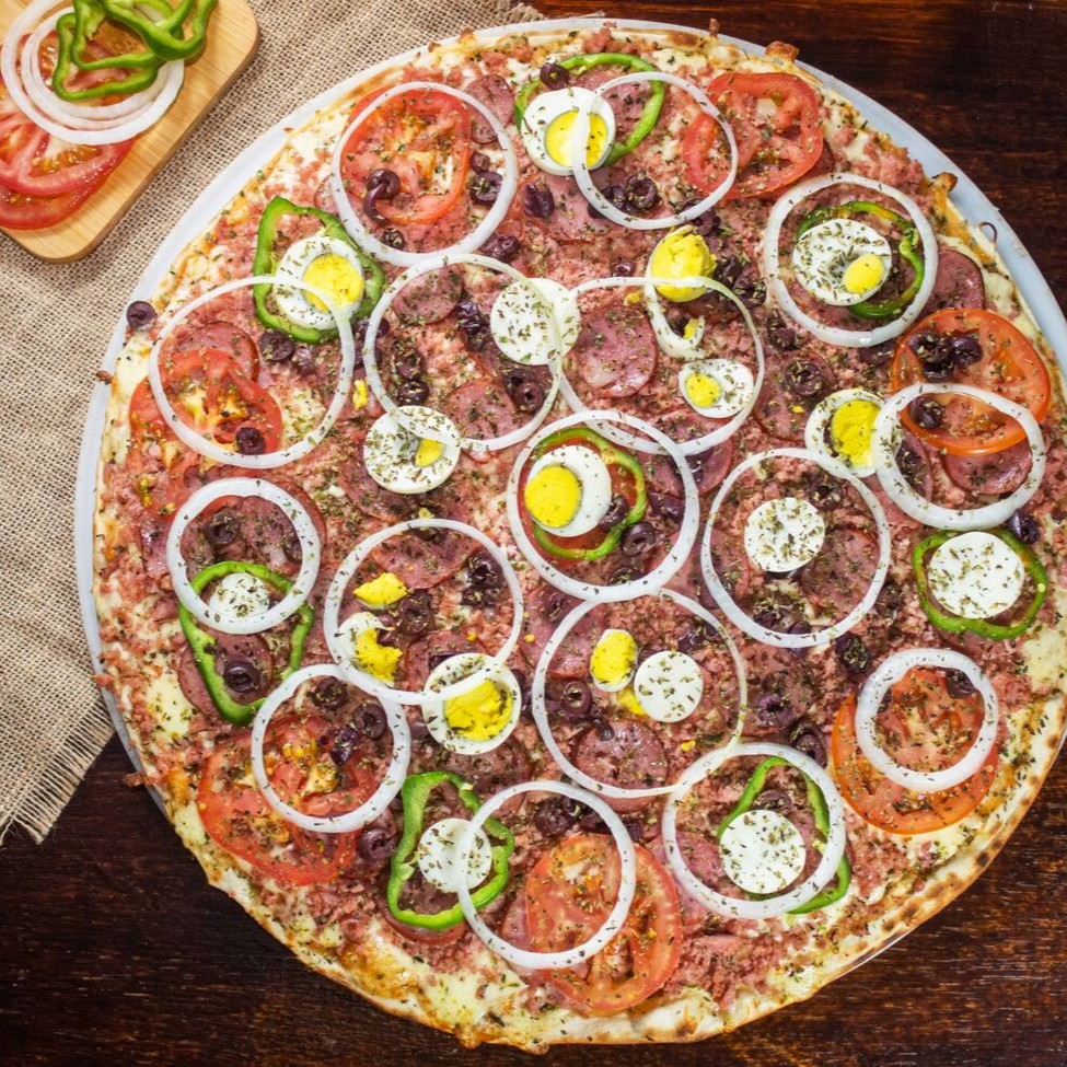 Deliciosa pizza de 40cm, massa fina, base com molho artesanal e queijo mussarela, complementos escolhidos por você e finalizada com orégano.