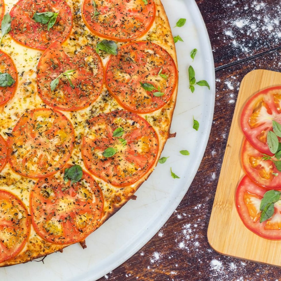 Deliciosa pizza de (30cm), massa fina, base com molho artesanal, queijo mussarela, tomate, manjericão e finalizada com orégano.