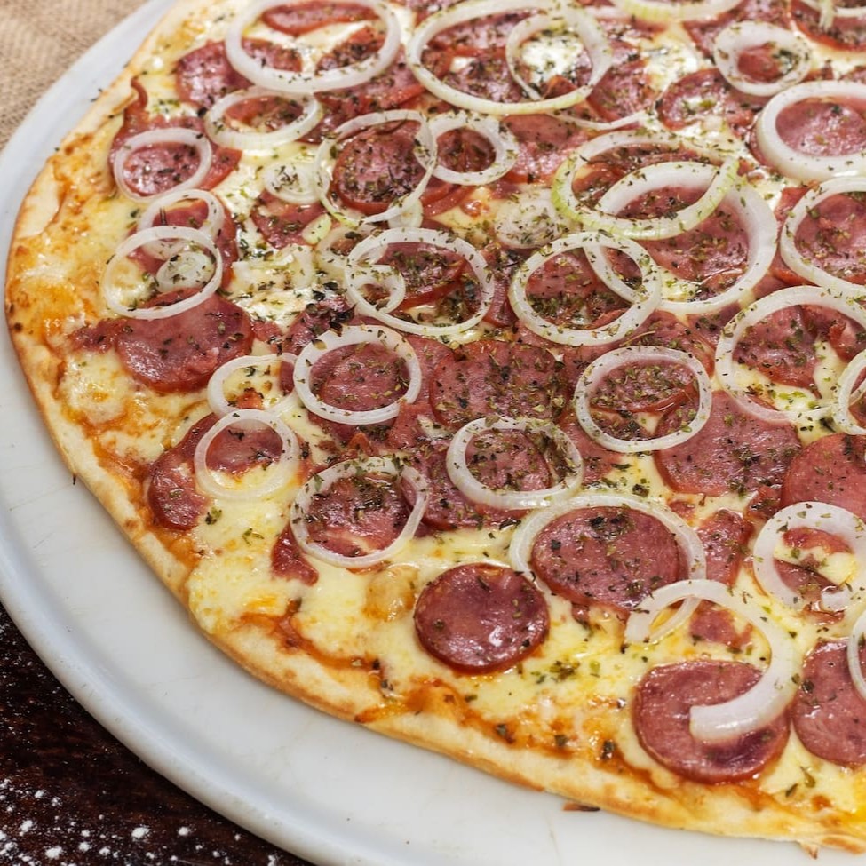 Deliciosa pizza de (30cm), massa fina, base com molho artesanal, queijo mussarela, calabresa, cebola e finalizada com orégano.