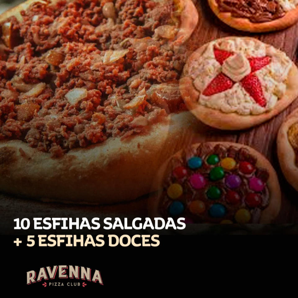 Explosão de sabores. 10 esfihas salgadas + 5 esfihas doces