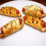 Nossa deliciosa massa enrolada na salsicha, recheada com mussarela e cheddar.
