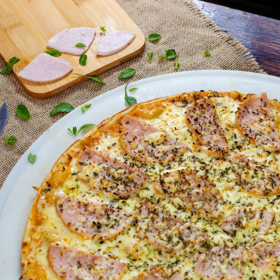 Deliciosa pizza de 30cm, massa fina, base com molho artesanal, queijo mussarela, complementos escolhidos por você e finalizada com orégano.