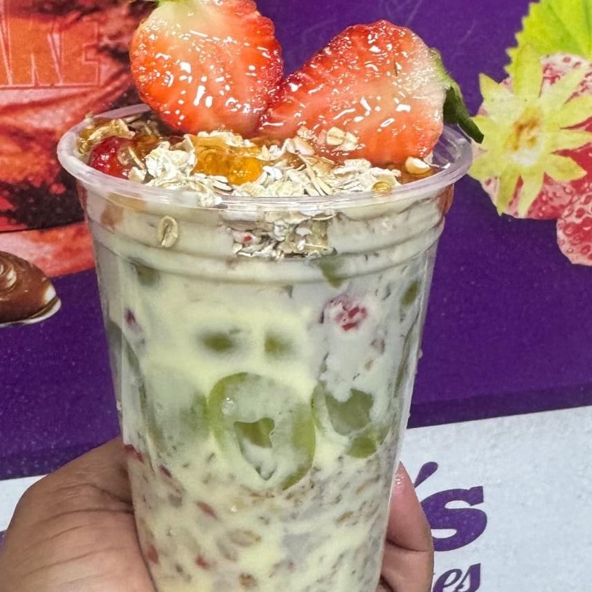 Creme de Ninho Cobertura de Banana e Caramelo Leite em pó, granola e aveia Canudinho Fruta