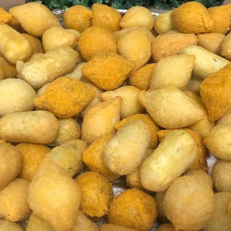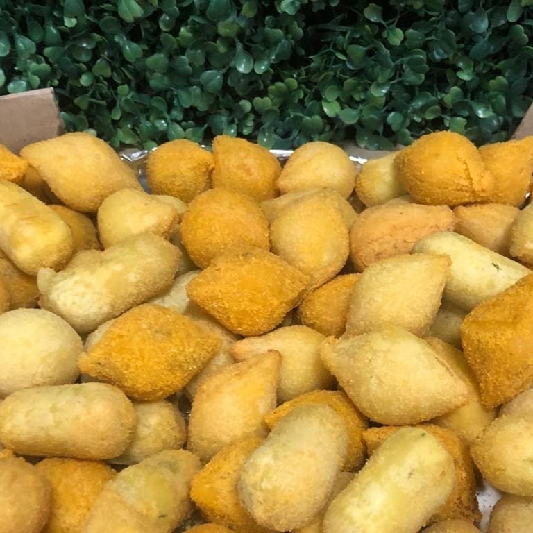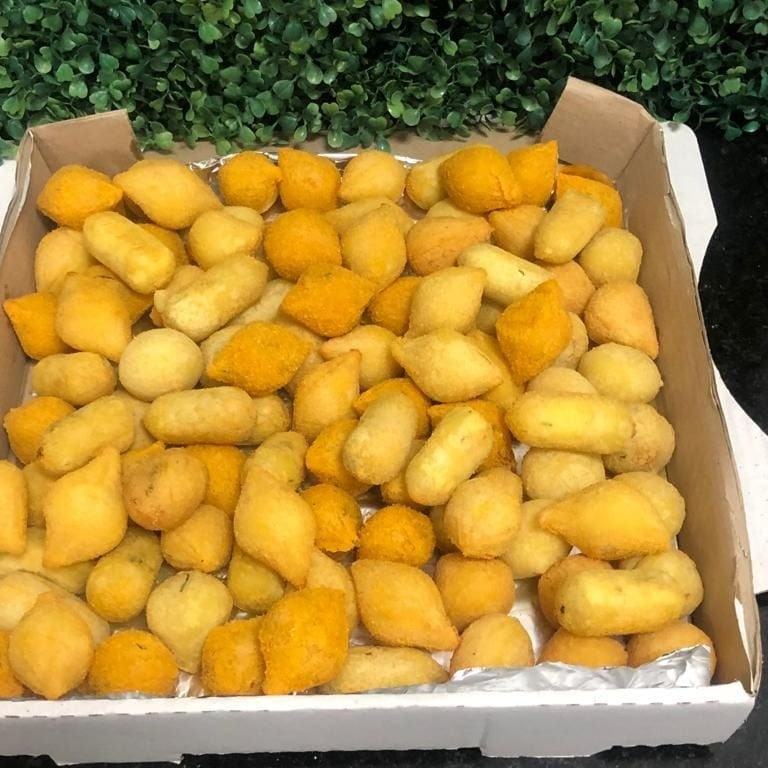 Nossos salgados são feitos com ingredientes frescos e de alta qualidade, preparados com todo cuidado e carinho para proporcionar uma experiência única de sabor. Cada opção é uma verdadeira explosão de gostos irresistíveis, perfeita para qualquer momento do Dia. Se você está buscando uma opção prática para um lanche ou um acompanhamento delicioso, nossos salgados são uma ótima escolha. 50 salgadinh