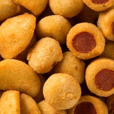 Sabe aquele salgado que conquista pelo sabor? Os nossos são feitos com massa especial de batata e leite, frito em óleo de palma para garantir um acabamento crocante e sequinho. Para quem ama coxinha, a versão do Rb vai te surpreender. Sabores. Coxinha de frango Coxinha calabresa com queijo Coxinha calabresa Bolinha queijo Salgado sabor Pizza Enroladinho de Salsicha Croquete calabresa com quei