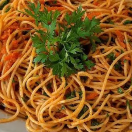 Uma deliciosa massa talharim ao molho branco com linguiça e bacon.