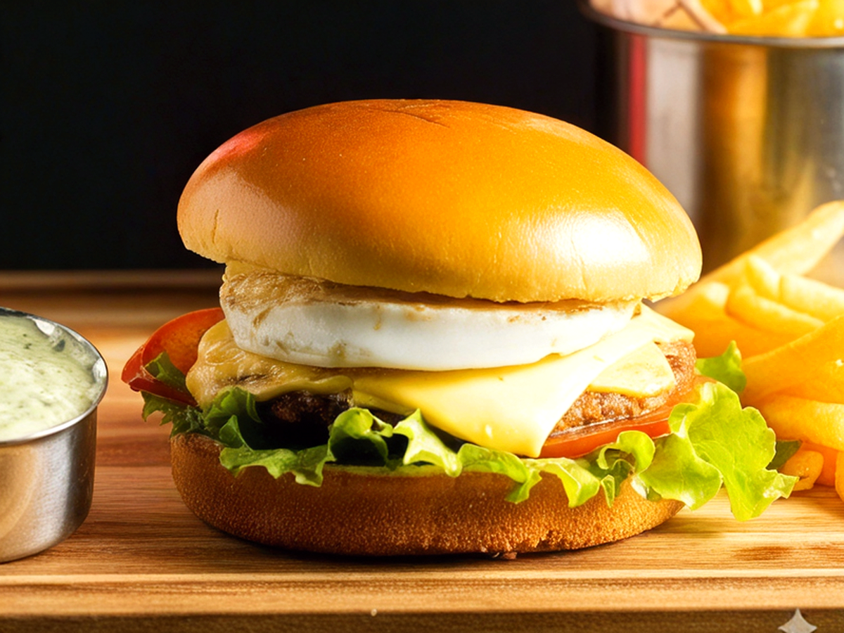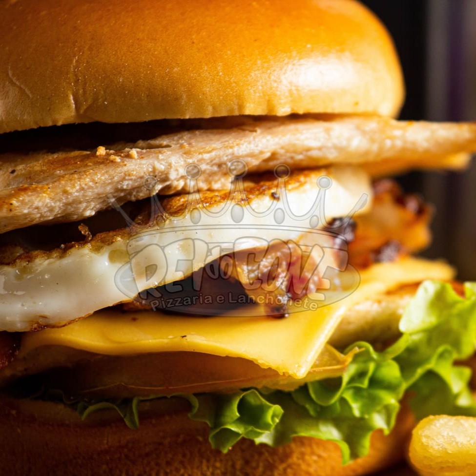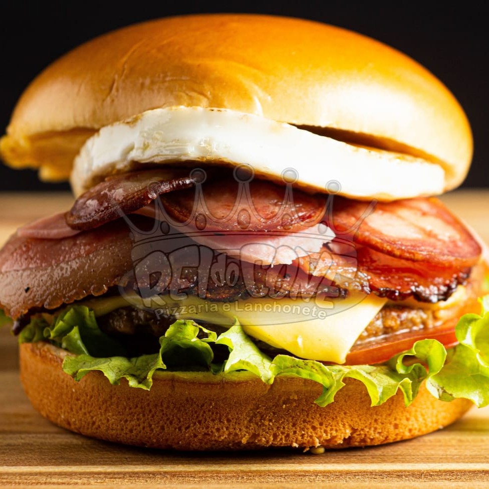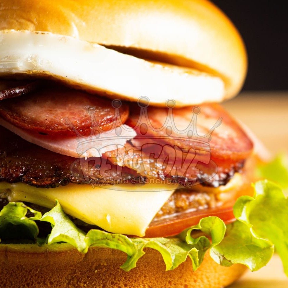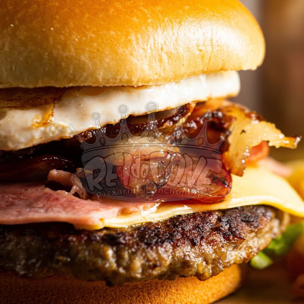 Pão de bioche, hambúrguer de picanha, queijo cheddar fatiado, presunto, bacon, ovo, salada e molho especial.