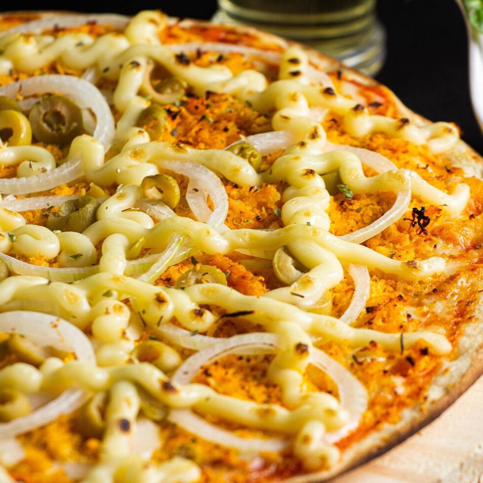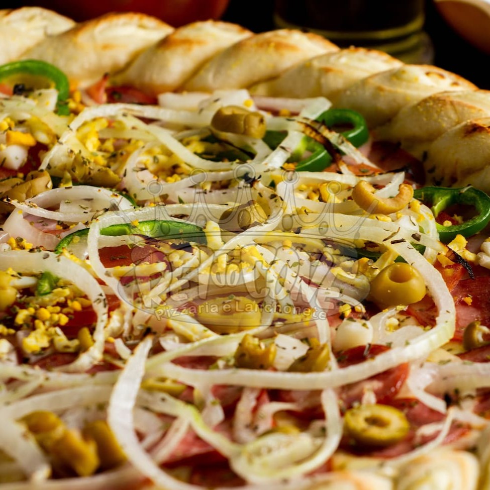 Muçarela, calabresa, cebola, azeitona e orégano