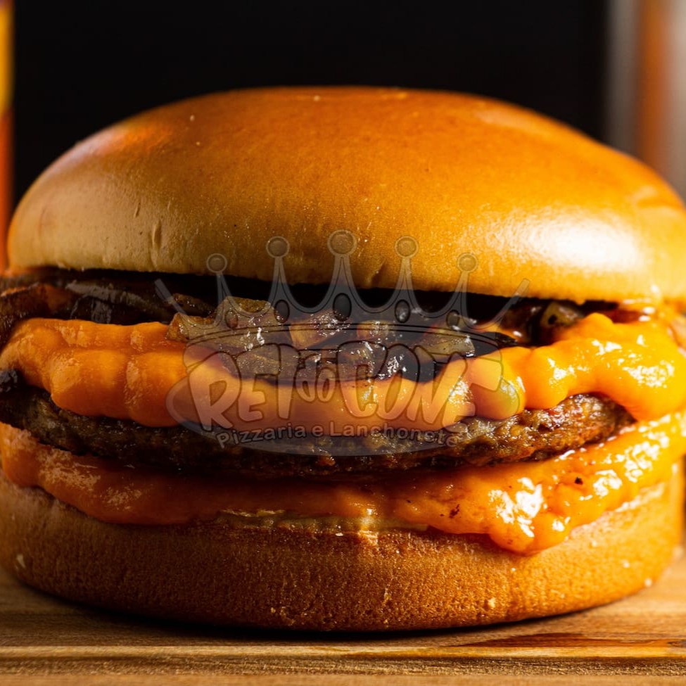 Pão de brioche 02 carnes de hamburguer 56g cada, cheddar cremoso, cebola no shoyo