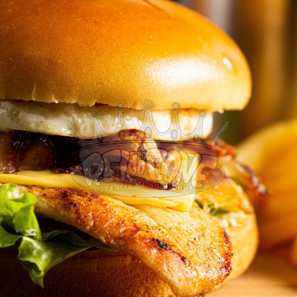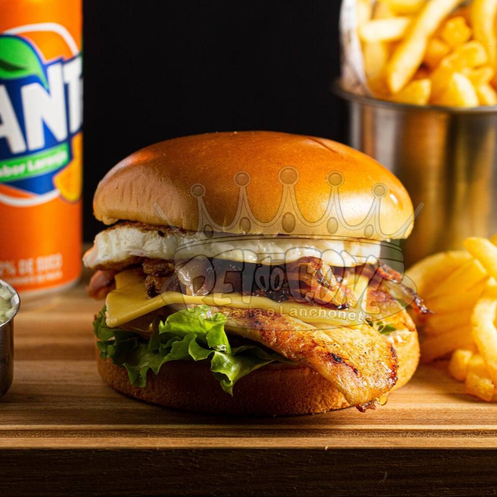 Pão de brioche, 2 filés de frango, queijo cheddar fatiado, requeijão, bacon, salada e molho especial.