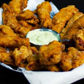 Filézinho de frango empanado acompanhado de molho da casa