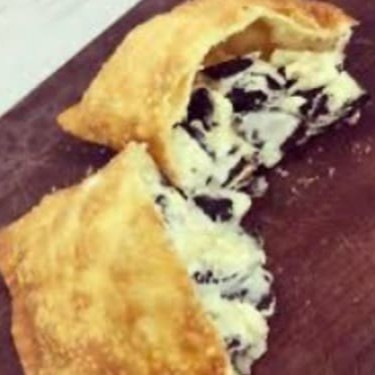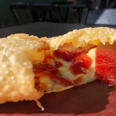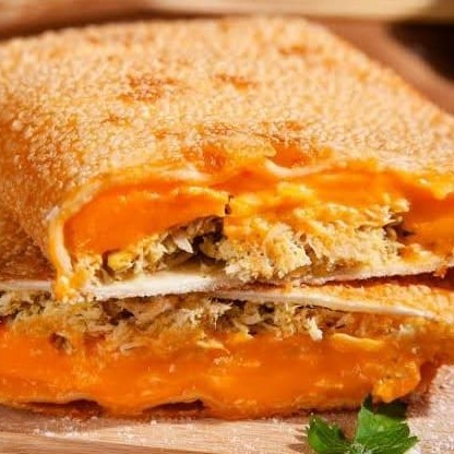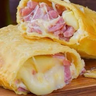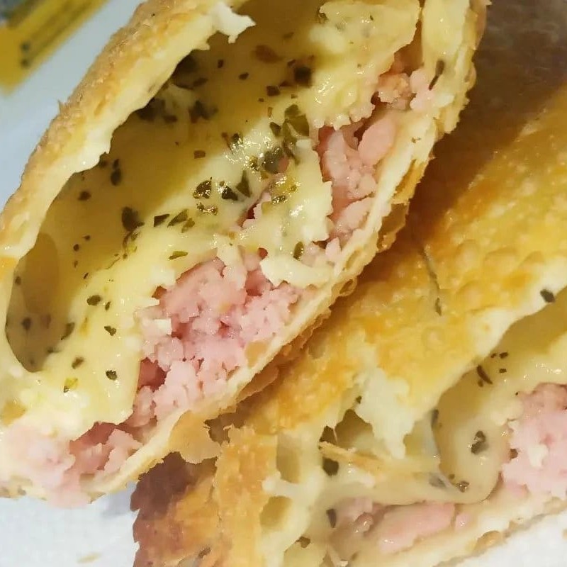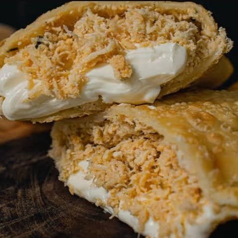 Pastel frito recheado com queijo, irresistivelmente crocante e saboroso.