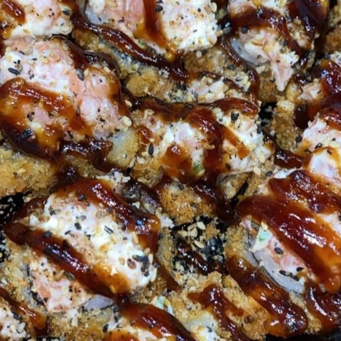 3 joe ebi, 3 joe salmão selado, 3 joe peixe branco, 3 joe tartar e 3 joe com geleia de pimenta