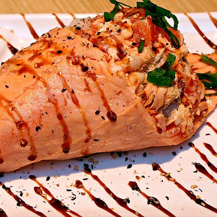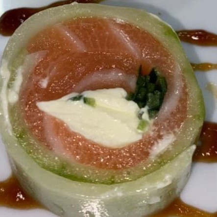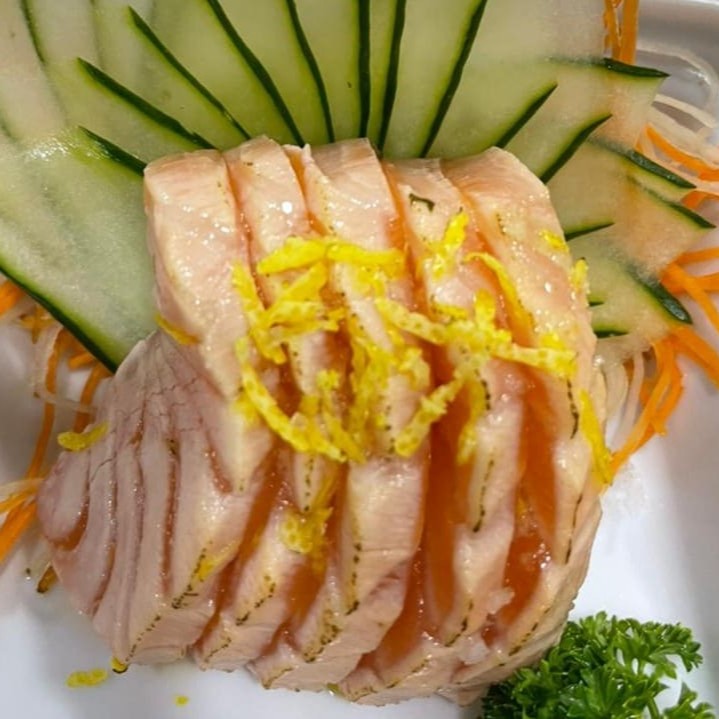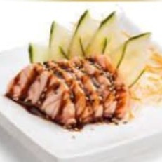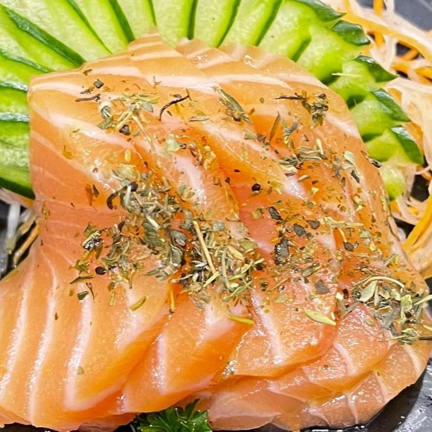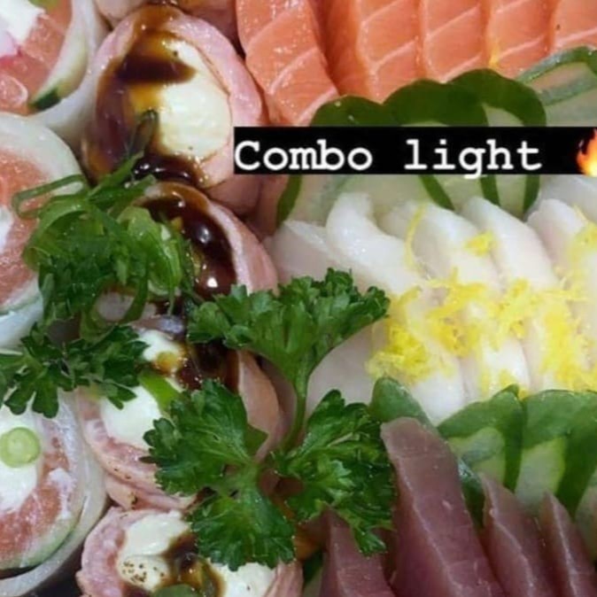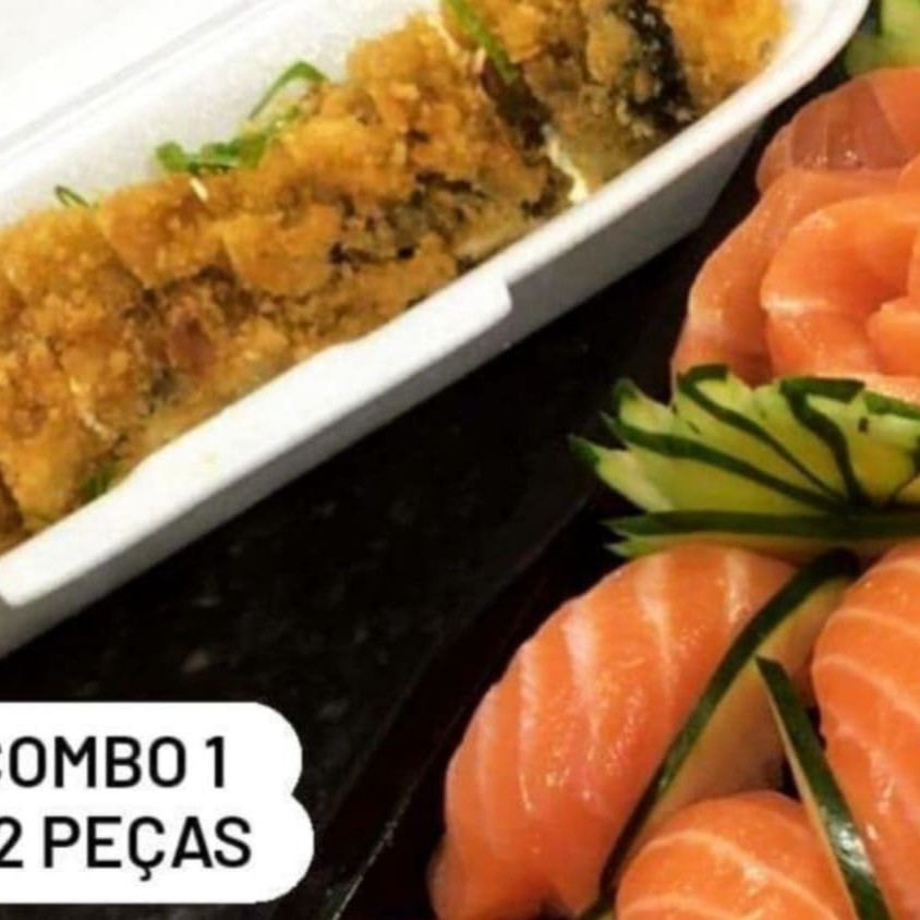 6 sashimi salmão, 6 sashimi peixe-branco, 4 sashimi atum, 6 joe selado sem arroz e 6 pepino especial