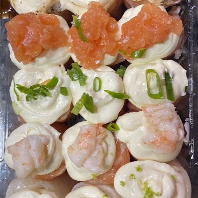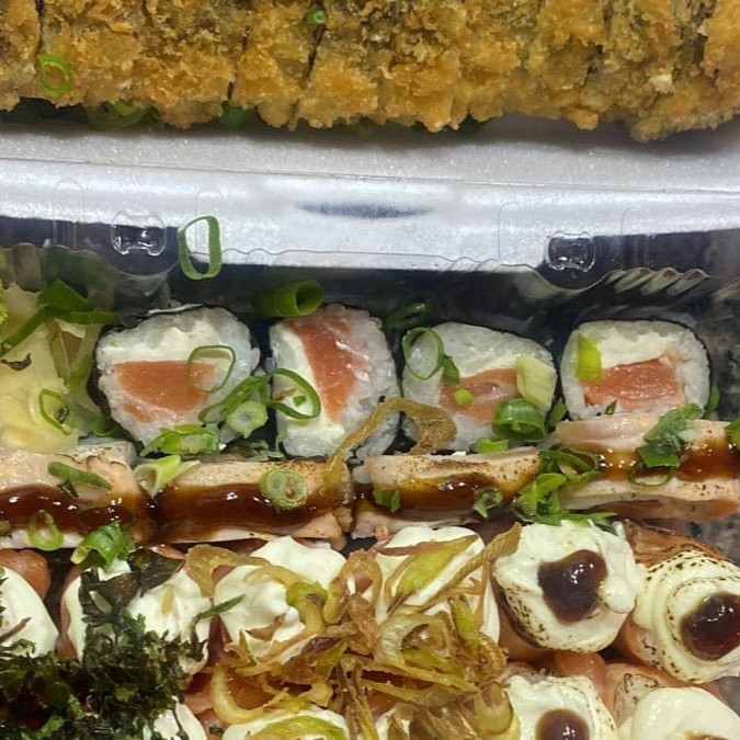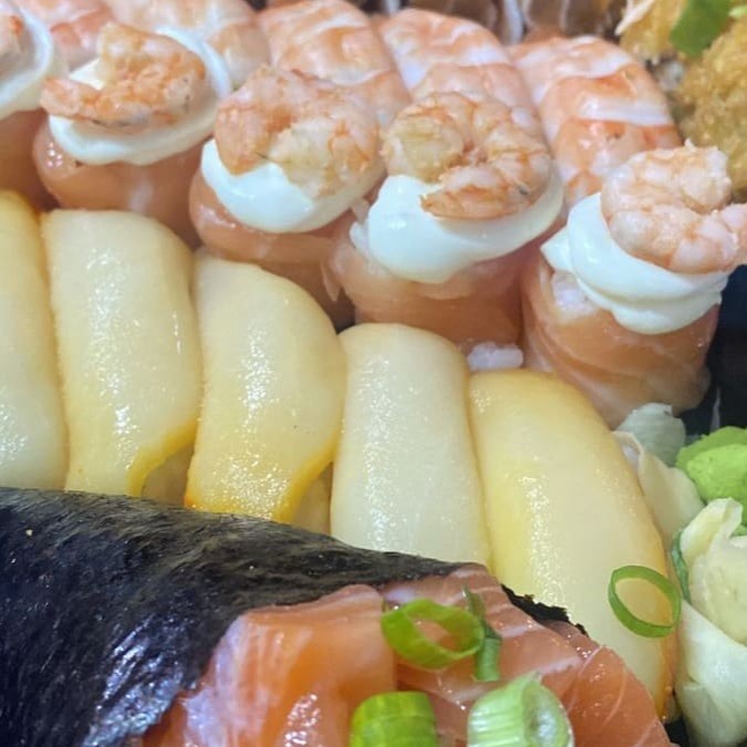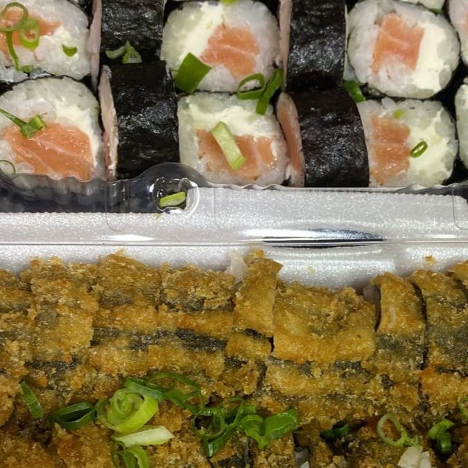 4 joe selado, 4 joe alho poró, 4 joe couve, 4 uramaki especial de camarão, 4 hossomaki filadelfia e 12 hots.
