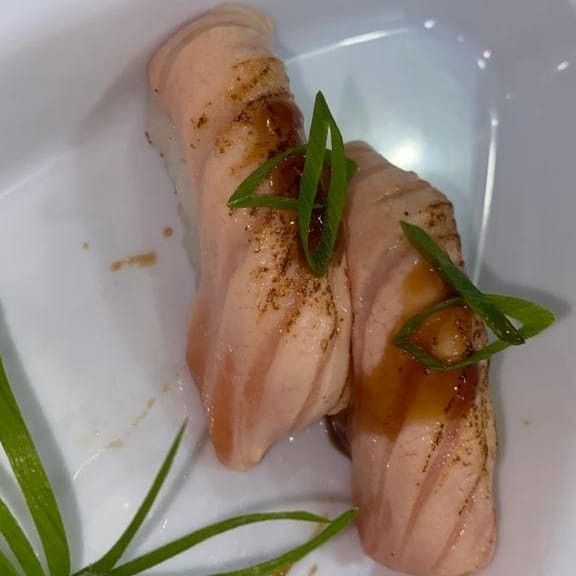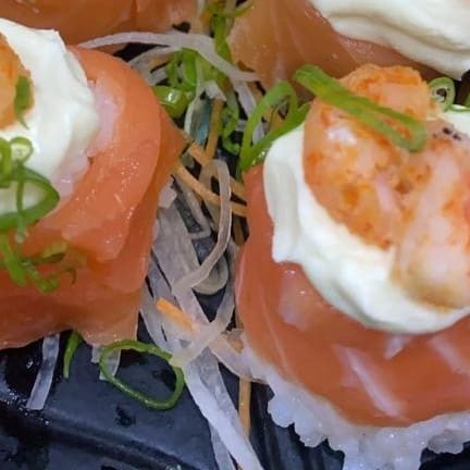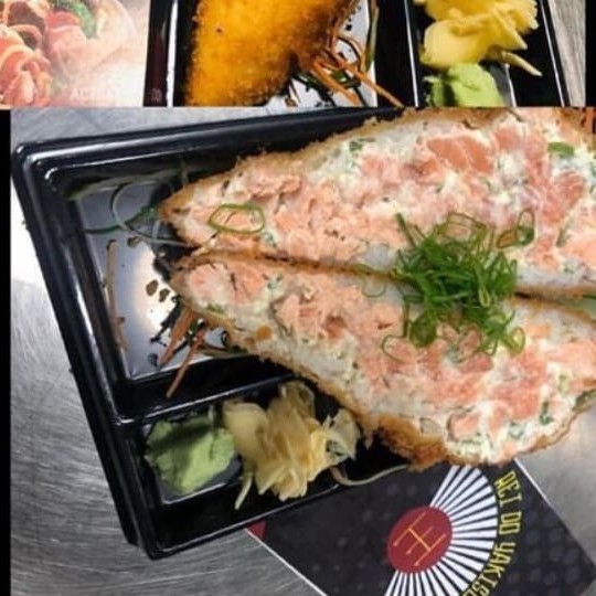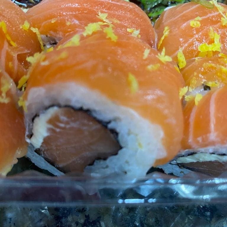 5 sushi salmão, 5 sashimi salmão e 12 hots filadélfia