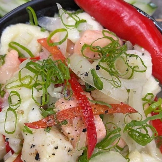 Cebola roxa , salmao, pimenta dedo de moça, peixe branco, atum suco de limao e laranja