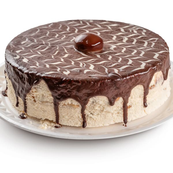 Finíssimo creme de baunilha intercalado com biscoito tipo maizena, coberto com delicioso ganache de chocolate.