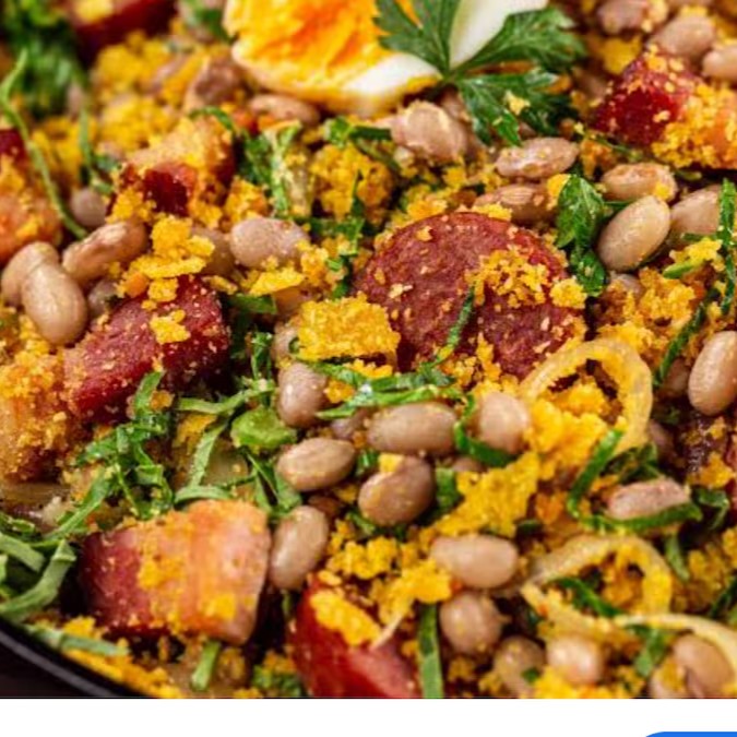 Farinha, feijão fradinho,ovos , cheiro verde, linguiça picada