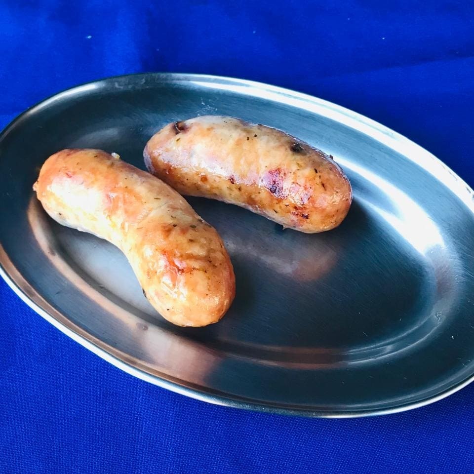 Drumet, linguiça de frango e linguiça suína. Acompanha: arroz, feijão, farofa, molho e fritas.