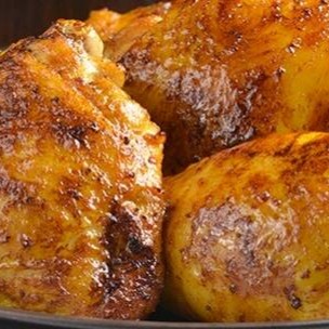 Frango Assado Com Arroz, Feijão, Farofa E Fritas.