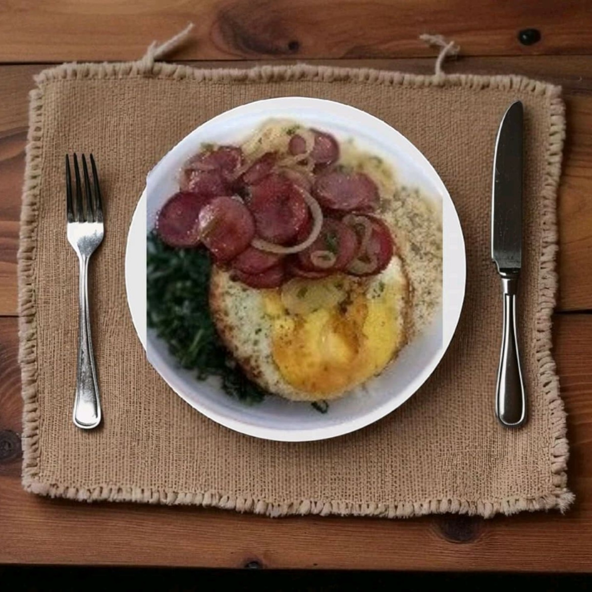 Linguiça Calabresa Acebolada - Com Ovo Frito