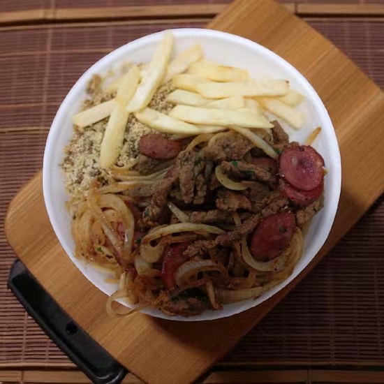 Arroz: Soltinho Feijão: Cremoso, tempero caseiro Farofa: Crocante e irresistível. Acompanhamentos: opcional