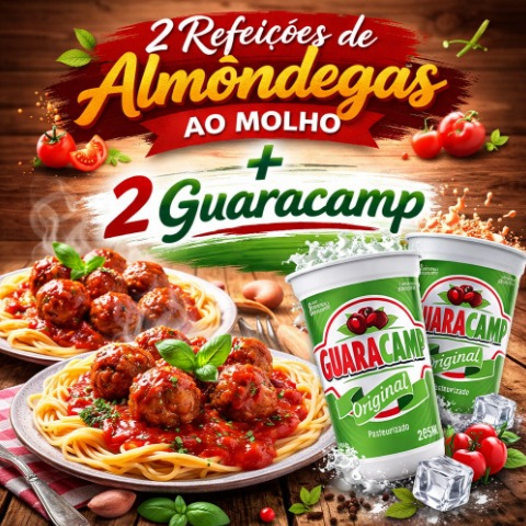 2 Refeições De Almôndegas Ao Molho + 2 Guaracamp