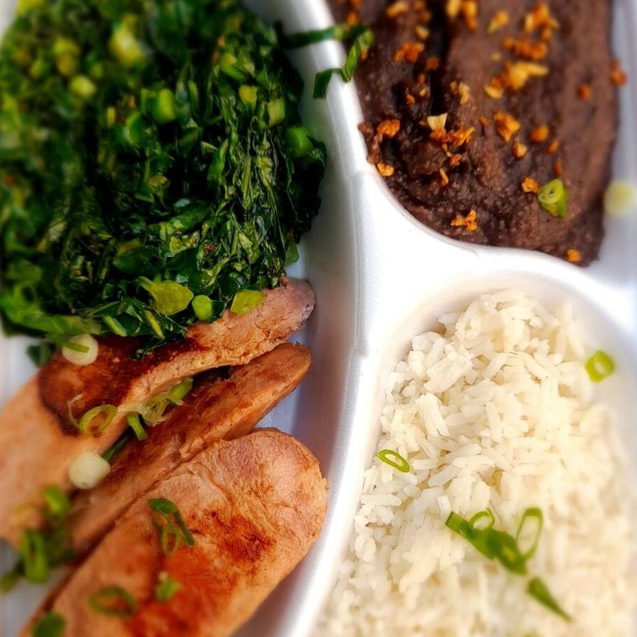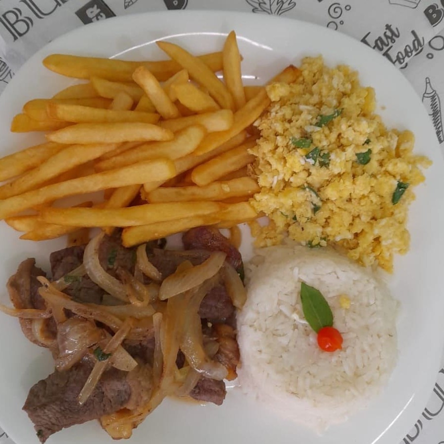 Acompanha: Arroz branco ou integral, feijão preto, farofa, fritas, salada de alface e tomate ou vinagrete ou legumes.