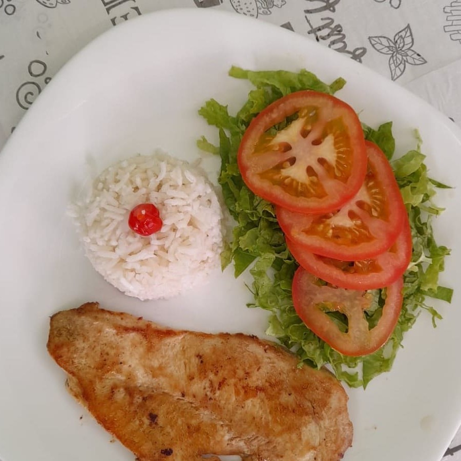 Acompanha: Arroz branco ou integral, feijão preto ou pirão de peixe, farofa, macarrão ou fritas ou purê de batata, salada de alface e tomate ou vinagrete ou legumes.