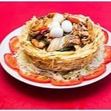 Apresentamos o 'Ninho de Passarinho', um dos pratos mais solicitados e admirados da nossa casa. Trata-se de uma cesta crocante e saborosa de batata palha, cuidadosamente recheada com uma combinação perfeita de carnes suculentas de frango e bovina, acompanhada de lula fresca e camarões tenros. Acompanhado por legumes frescos e coloridos, este prato é uma verdadeira obra de arte comestível que serve duas pessoas. Experimente esta especialidade da casa e descubra o motivo de ser tão cobiçada e fotografada!