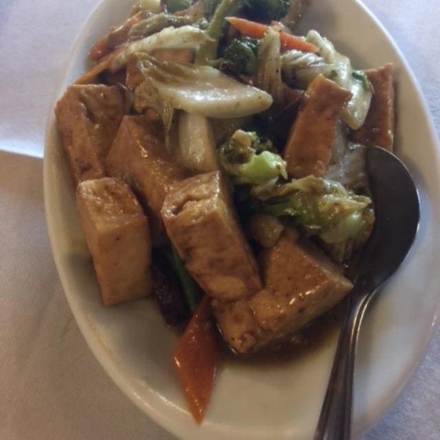 Delicie-se com o nosso 'Tofu com Camarão', uma das novidades da estação. Este prato combina perfeitamente o queijo de soja frito, de textura suave e sabor delicado, com camarões frescos e saborosos. Os legumes salteados acrescentam um toque crocante e recheado de sabor. Uma experiência gastronômica que equilibra a sutileza do tofu com a robustez do camarão, num casamento perfeito para o seu paladar. Experimente e surpreenda-se!