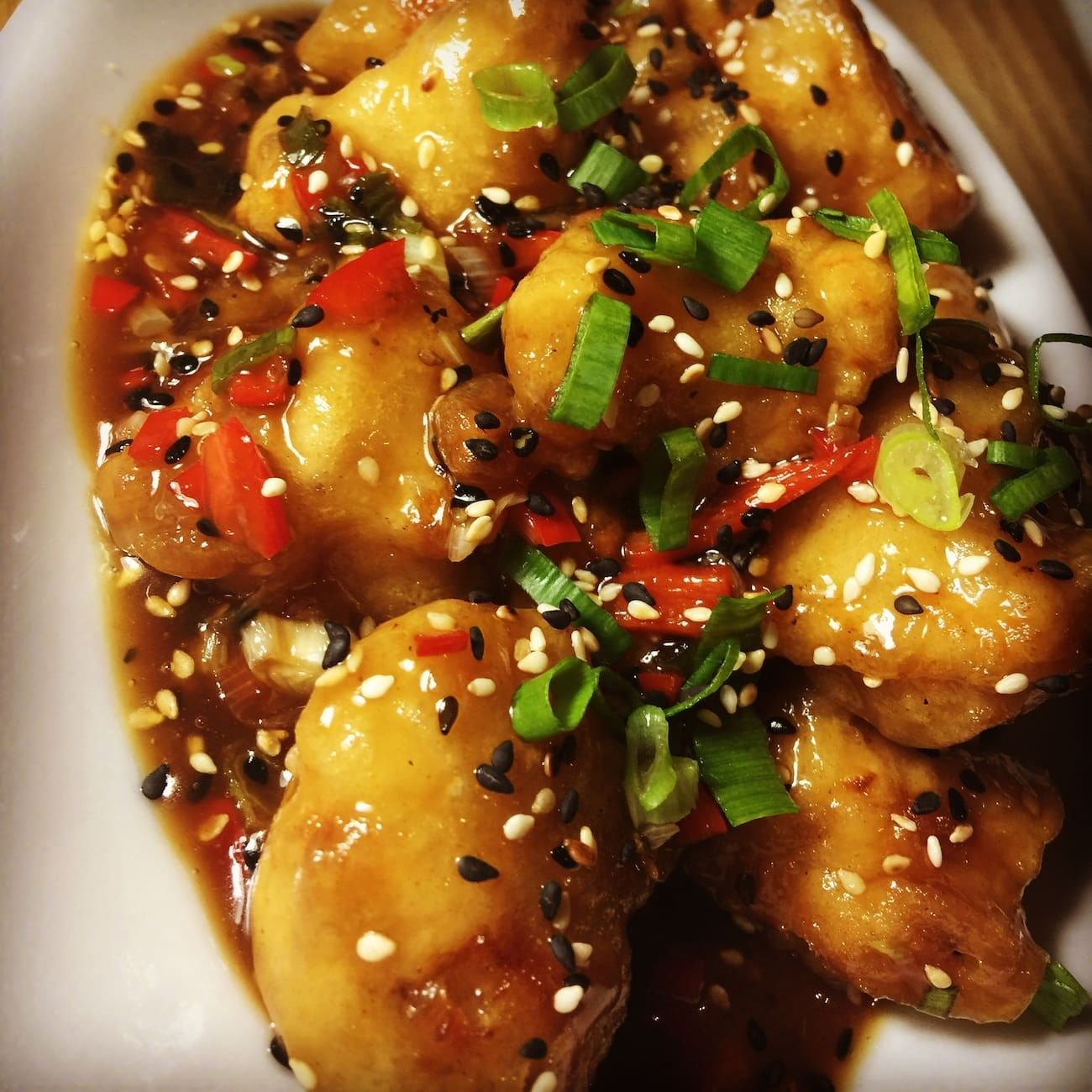 Apresentamos nossa novidade: o Frango Oriental ao Molho de Laranja. Deguste cubos suculentos de peito de frango, criteriosamente empanados com a leve e crocante massa de tempura. Estes são regados com um molho de laranja vibrante e doce, que cria uma harmonia perfeita de sabores. Para finalizar, o prato é delicadamente salpicado com gergelim, adicionando uma textura extra e um toque sutil de noz. Este prato é um clássico autêntico da culinária chinesa, trazido até você para uma experiência culinária inesquecível. Ideal para duas pessoas compartilharem um momento especial.
