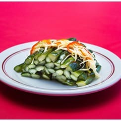 Pepino japones cortado em tiras e marinado no sake e vinagre. Para quem gosta de sunomono vai se apaixonar pela sua versao chinesa do prato