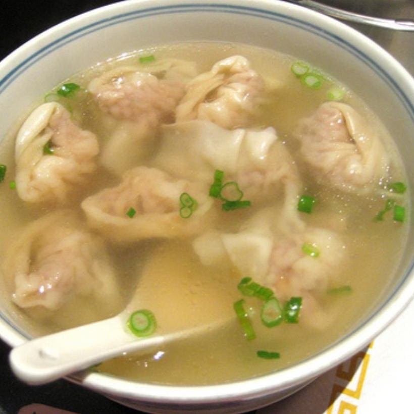 Wonton sao raviolis chineses recheados de lombo. Essa sopa aquece ate o coracao mais frio. Confort food chines. Recomendamos que seja pedido apenas para delivery no Bairro de Copacabana pois os raviólis são bem delicados e já houveram casos deles se abrirem qdo a entrega é mais distante. Utilizamos para transportar a sopa uma embalagem de isopor por entendermos que mantém a temperatura e impede o vazamento da mesma . Foto meramente ilustrativa.