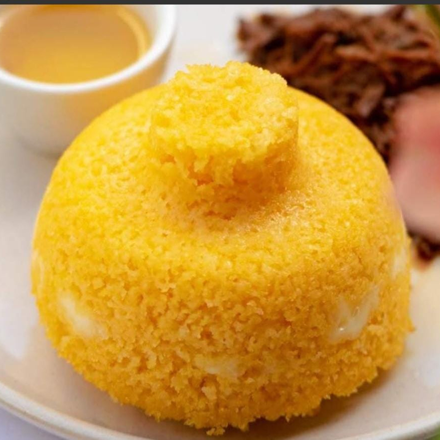 Cuscuz na manteiga, recheado com Strogonoff de carne.