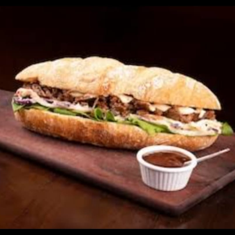 PÃO BAGUETE,MOLHO DE ALHO,ALFACE,VINAGRETE ESPECIAL,FRANGO COM TEMPERO ARABE,