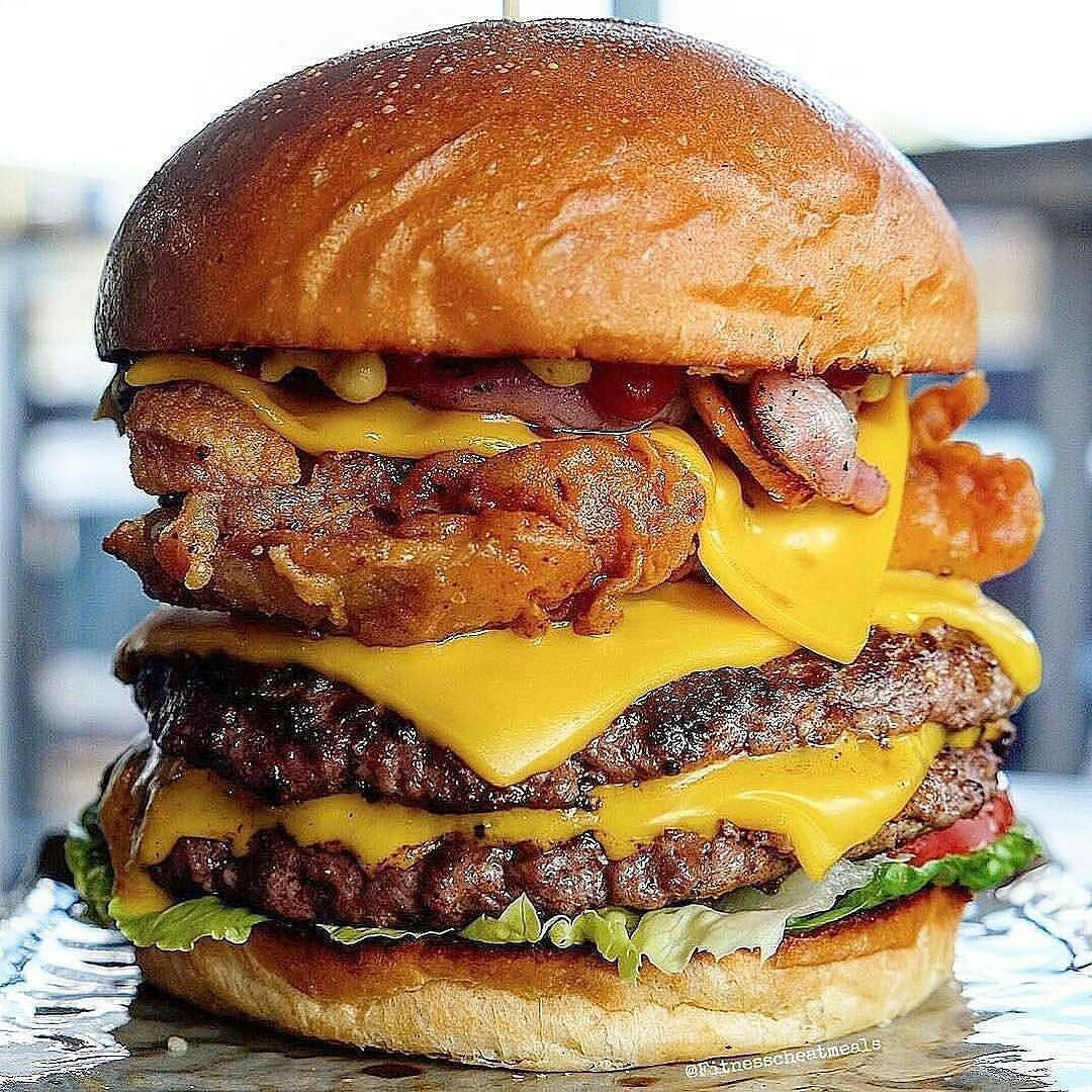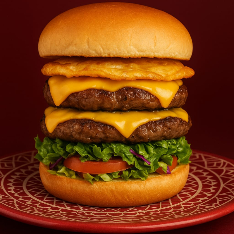 PAO BRIOCHE,MOLHO DA CASA ,ALFACE,VINAGRETE ,DOIS HAMBURGER´S SABOR PICANHA,MUSSARELA E CHEDDAR E OVO.