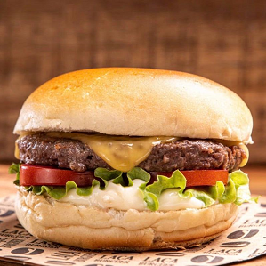 PAO BRIOCHE,MOLHO DA CASA ,ALFACE,VINAGRETE ,HAMBURGER SABOR PICANHA,MUSSARELA.