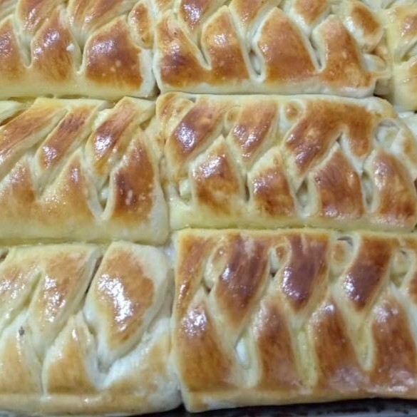 Massa com mais manteiga e com recheio de queijo mussarela e catupiry
