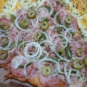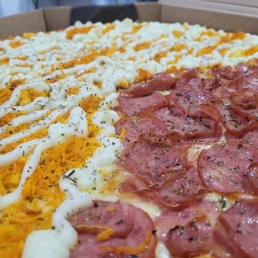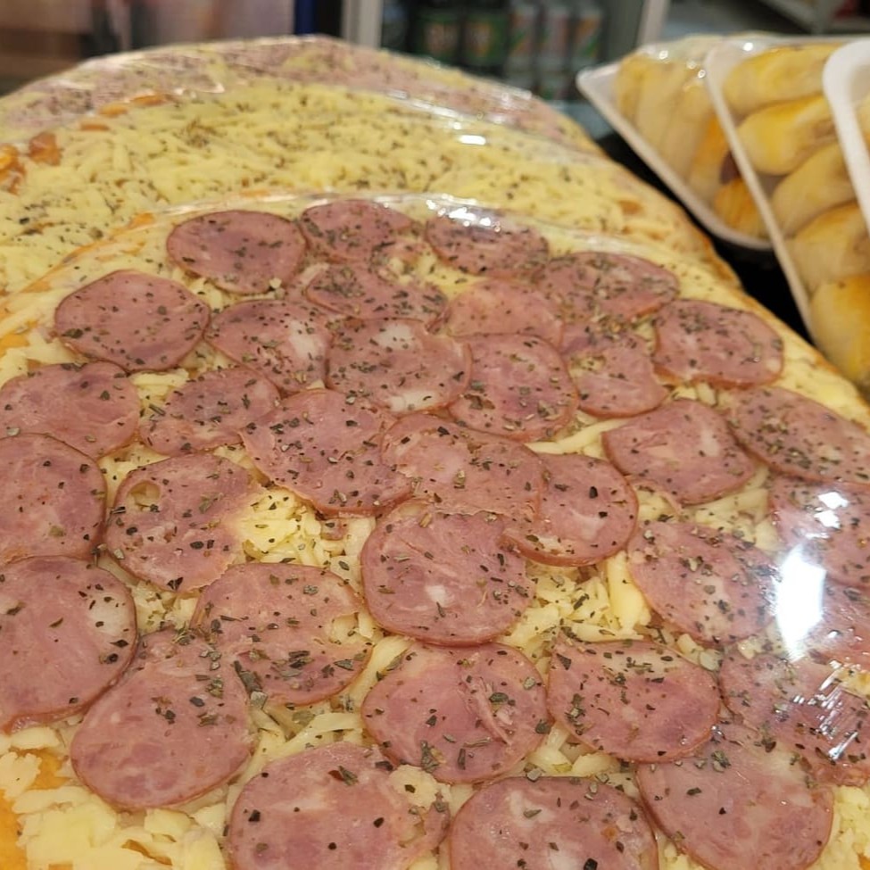 Mussarela,molho de pizza,calabresa,presunto,cheddar e orégano