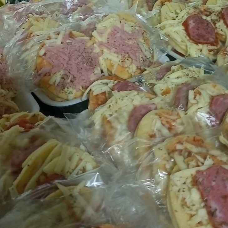 Massa assada com molho de pizza + muçarela, presunto e orégano